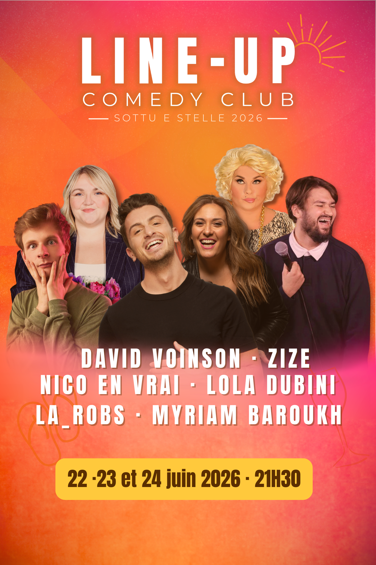 Sous le ciel corse, entre Cap Corse et golfe d'Ajaccio, viens vivre trois soirées d'humour inédites et mémorables avec le LINE-UP Comedy Club — Sottu e Stelle.